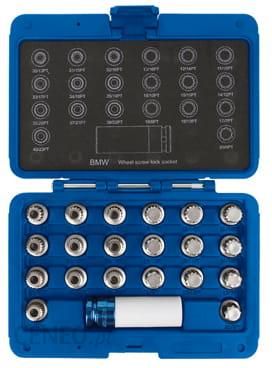 ZESTAW NASADEK DO ŚRUB ZABEZPIECZAJĄCYCH KOŁO (BMW), 21 cz. 9BW0221 Stosowane do montażu i demontażu blokad śrub większości modeli BMW.Nasadki ze stopu chromowo molibdenowej, chromowanej.Zawartość: # 30 / 13PT, # 31 / 15PT, # 32 / 16pt, # 33 / 17PT, # 34 / 18pt, # 35 / 19PT, # 36 / 20PT, # 37 / 21PT, # 38 / 22PT, nr 40 / 23PT, # 13 / 16pt, # 12 / 14PT, # 11 / 15PT, # 16 / 10pt, # 15 / 11pt, # 14 / 12pt, # 19 / 8PT, # 18 / 13PT, # 17 / 7PT, nr 20 / 9PT,# 494517M (1/2 „DR. x 17mm)